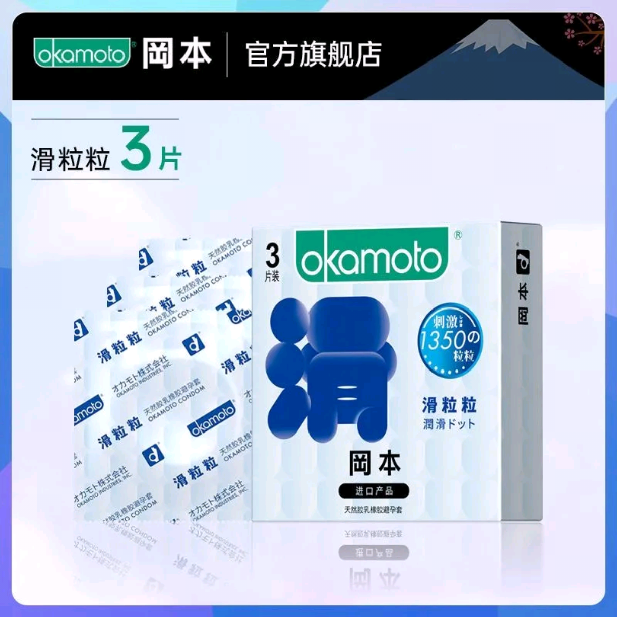 『日制冈本』1350颗粒滑粒粒避孕套 3只装-A327