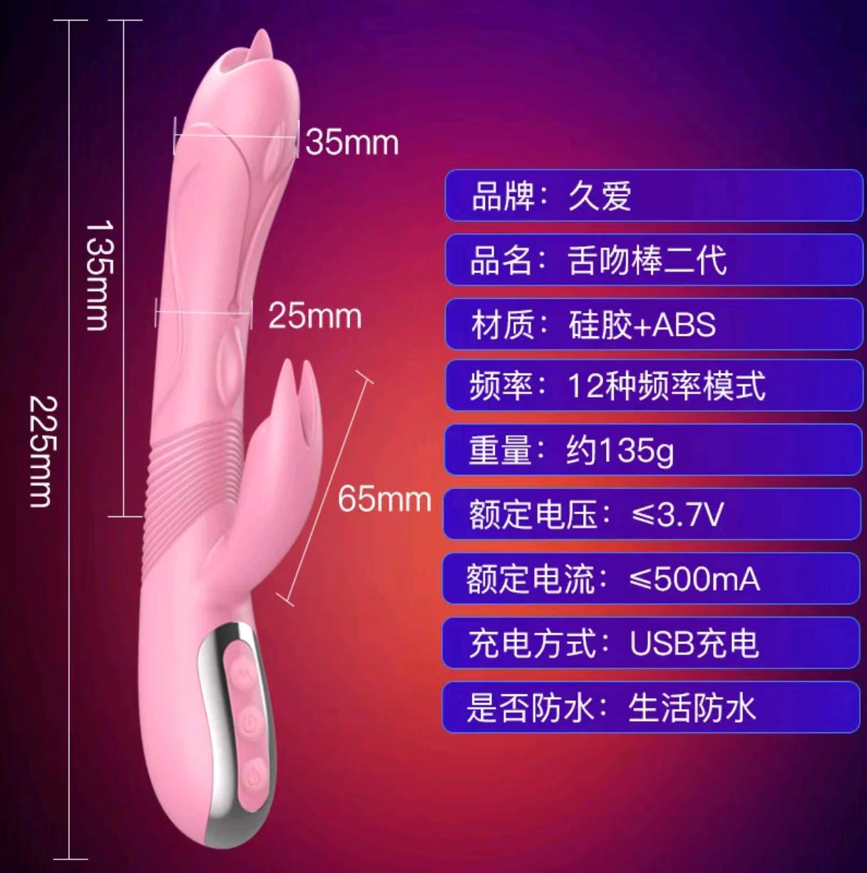 【外撩内震】久爱二代舌吻棒全自动伸缩静音加温防水震动棒-Z048